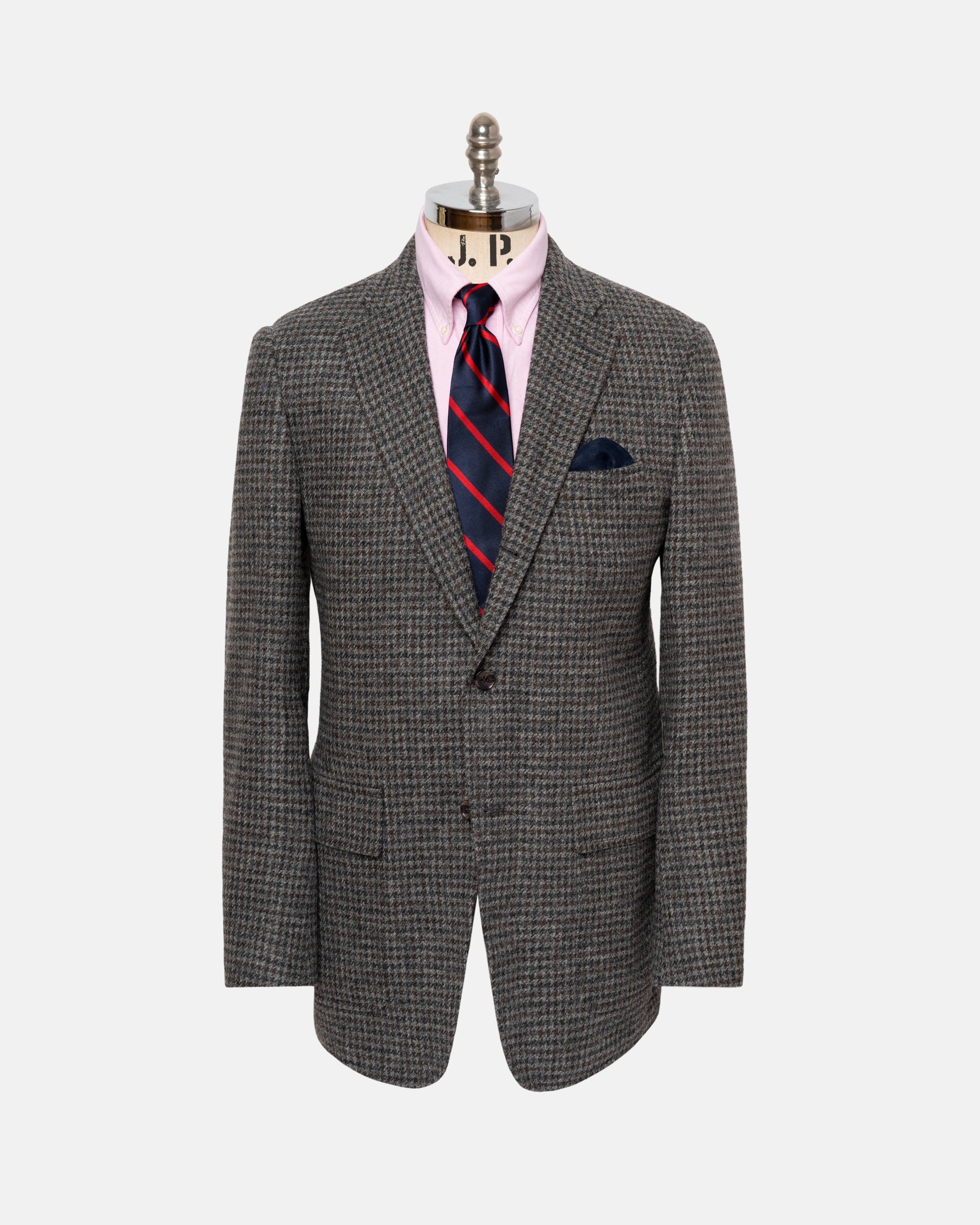 Made-in-USA Grey & Brown Houndstooth Cheviot Tweed Sport Coat - Custom Make -